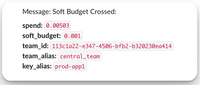 | Budget & Spend | Budget tracking per key/user, Soft budget alerts, Weekly & Monthly spend reports per Team/Tag |